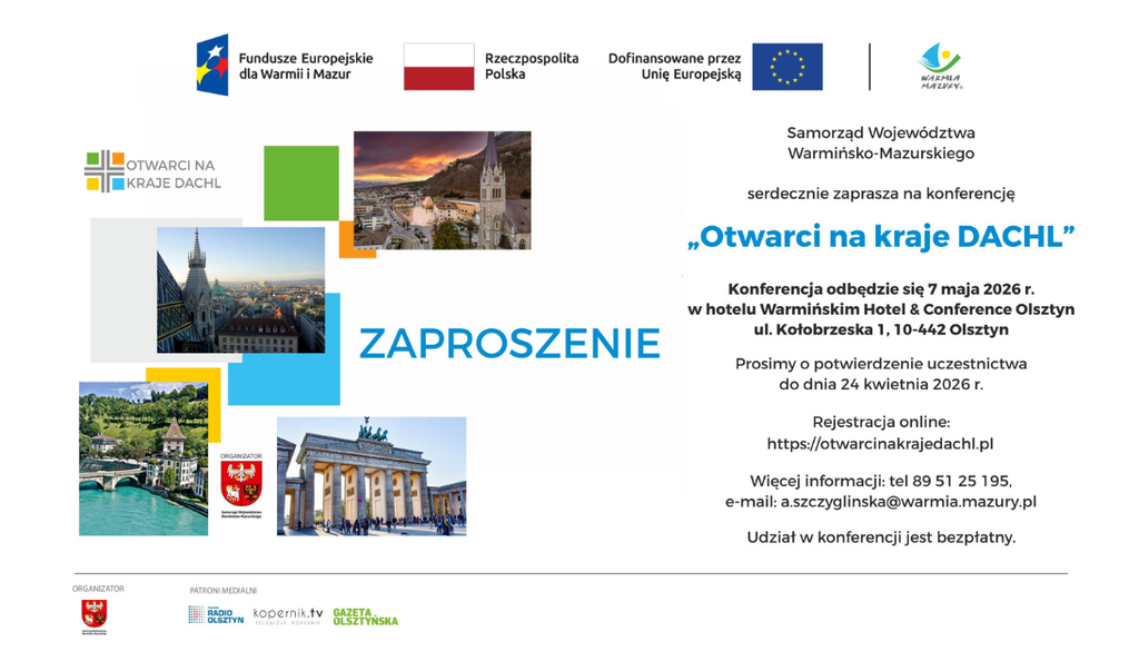 Zapraszamy na konferencję. Region DACHL to jeden z najsilniejszych obszarów gospodarczych w Europie. Już 7 maja 2026 r. w Olsztynie odbędzie się wyjątkowe wydarzenie, które otworzy przed Wami nowe drzwi.